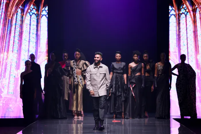 MULTI award-winning architect and fashion designer Kireshen Chetty clinched the prestigious 2025 Fashion Innovator Award at the Durban Fashion Fair (DFF) Recognition Awards. Here he is with models showcasing one of his previous collections.