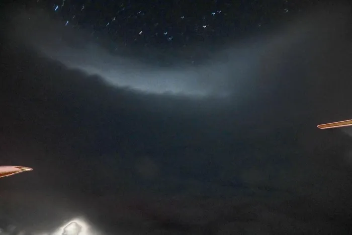 As we entered the storm, darkness fell. The sun had set, but the darkness looked, somehow, thicker. I could barely see the wing of the aircraft through the dullness. The outside wasn’t a dark abyss, but rather a dismal murk.
