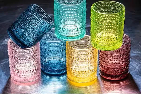 That’s how it goes with a certain style of glassware that has made its way firmly - yet quietly - into restaurants and onto home dining tables across the country. You’ve almost certainly seen it: It has rows of raised beads in the glass, like a stack of delicate pearl necklaces looped around the vessel. It comes in a rainbow of colors, from sky-blue to a pale rose.