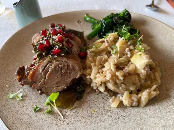 Karoo lamb with artichoke risotto, pomegranate and lamb jus.