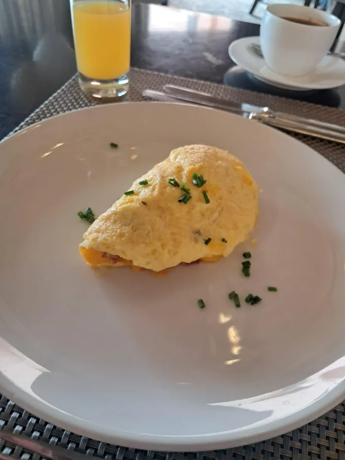 I enjoyed a bacon and mushroom omelette which was light and fluffy. It was also nice that a basket of hot toast came with it. None of this hovering around a toasting station waiting - and everyone trying to steal someone else's toast.