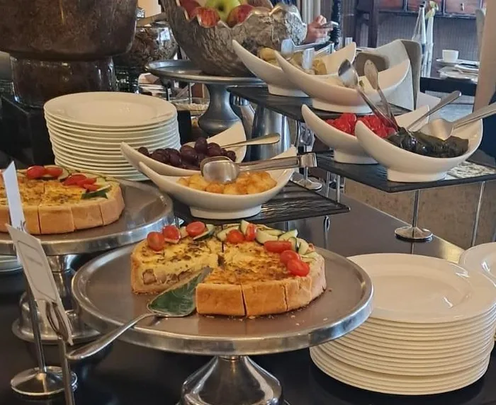 Then there is a whole selection of cheeses, cold meats, pickles, olives, artichokes, dolmades, capers, sauces, creamed feta, preserves etc. There is a vegetarian and chicken and leek quiche. Then come the breads and croissants and a selection of mini scones, muffins and Danish pastries along with jams and honey.