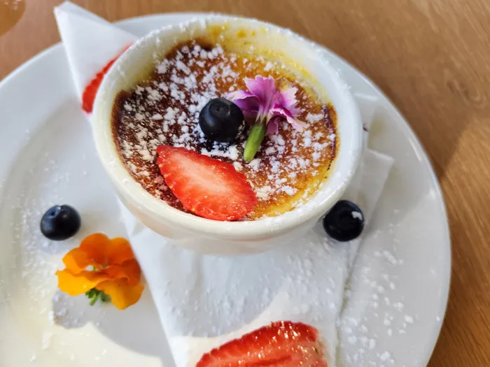 There are a number of light meal options including those mussels in cream, white wine and herbs that I had so enjoyed. The couple at the next table who were joined by a very well behaved Swiss shepherd, raved about the haddock fishcakes with crispy capers and a mini Caesar salad. Sounds good actually. There’s wood roasted baby chicken, and pork belly. A steak sandwich sounds a cut above average, as does steak au poivre with crispy French fries and a proper peppercorn sauce - their description.