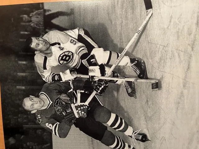 Bill Orban, left, in a National Hockey League game in 1967. He's still playing in his 80s and was recently inducted into the USA 80+ Hockey Hall of Fame.