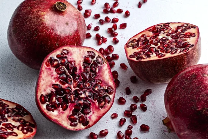 Gemlike pomegranate seeds offer a tart, juicy notes against the creamy panna cotta.