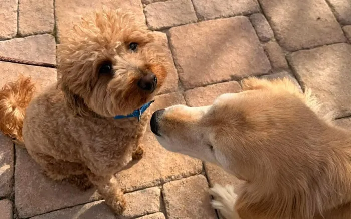Two-year-old goldendoodle JetBlue has a new forever home with a policeman and his family.