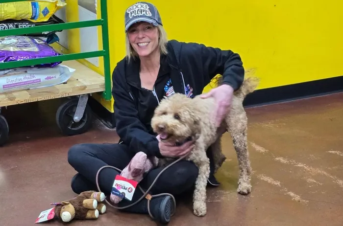 Ben Jenkins, who fostered JetBlue last week, said the goldendoodle appeared nervous when Jenkins picked him up Sunday. By Friday, JetBlue was playing with Jenkins’s four other dogs and with a pink stuffed bone toy that the goldendoodle picked out at a dog store.
