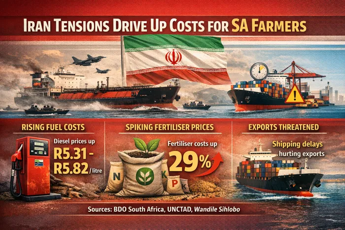 South African farmers are facing rising input costs and growing operational pressure as geopolitical tensions in the Middle East disrupt global energy and shipping markets.