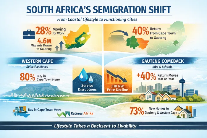 South Africa’s semigration boom is shifting, as homebuyers prioritise reliable infrastructure, service delivery and job opportunities over coastal appeal.
