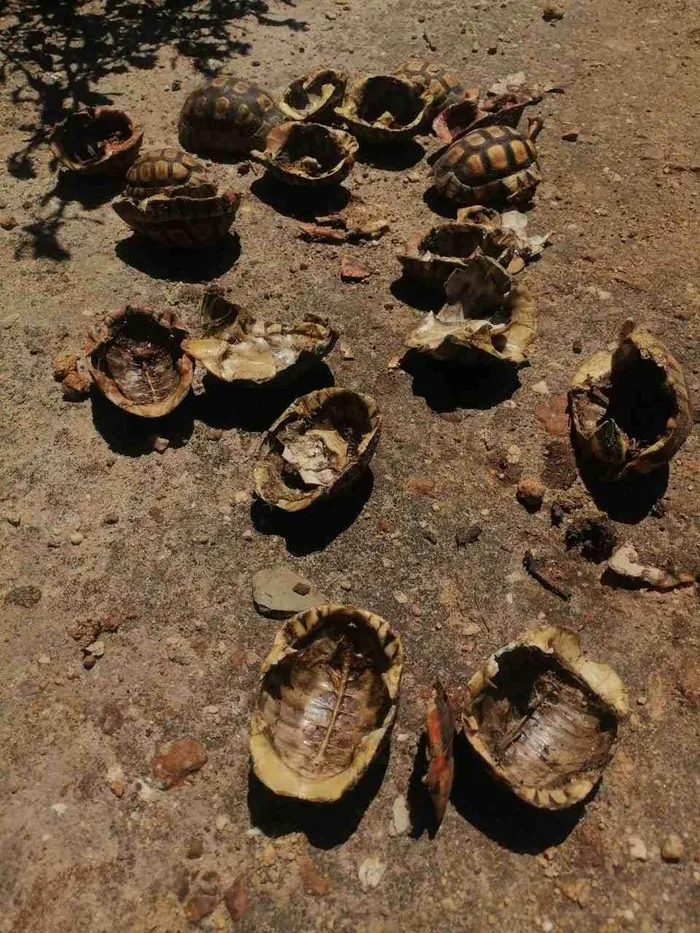 The shattered remains of 19 Angulate tortoises found at the Table Bay Nature Reserve.