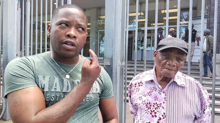 Nolan Williams (left) and Isaac Williams, the great-grandfather of the two-month-old infant speaks with the Cape Argus outside of the Wynberg Magistrate's Court.