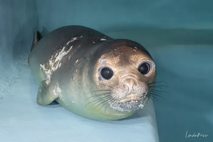 Rocky, a young elephant seal receiving care at uShaka Sea World. | Linda Ness