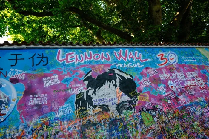 View of the l John Lennon Wall is a wall in the Mala Strana district Prague