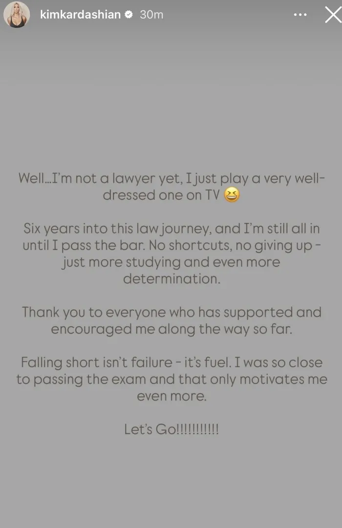 She shared: “Falling short isn’t failure - it’s fuel. I was so close to passing the exam, and that only motivates me even more. Let’s Go!!!!!”