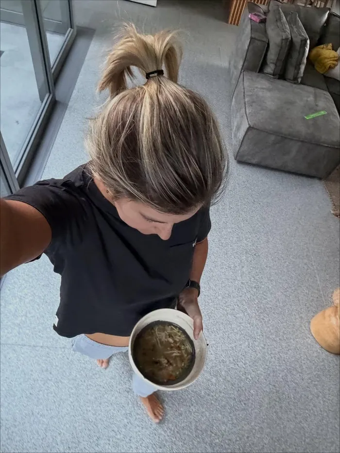 Wearing sweatpants and a t-shirt, Rachel posted an image of herself with a bowl of chicken soup at home, while adding to the caption: āNot quite how I ever imagined it, being away from my kids and not feeling my best, but sometimes life slows you down in ways you donāt choose.ā