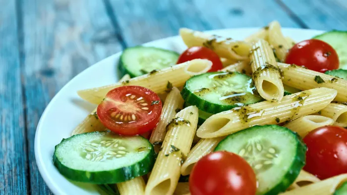 Cold pasta salad is a reliable picnic dish that can be prepared in advance. A simple combination of cooked pasta, cherry tomatoes, cucumber, olives and a light dressing creates a refreshing meal that is filling without being too heavy.