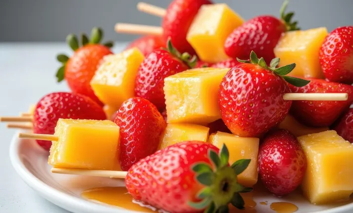Fresh fruit skewers offer a colourful and refreshing dessert alternative. Combining fruits like watermelon, pineapple and grapes creates a naturally sweet snack that helps balance out richer picnic foods and keeps the menu feeling fresh.