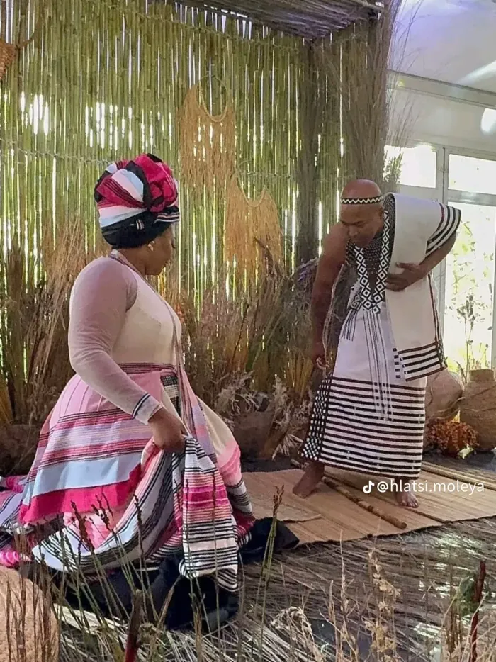 In the images, she wore traditional ikhetshemiya (a headscarf) and amadakhi (a decorative apron), serving tea to her new family with grace and poise. Her caption was simple yet powerful: