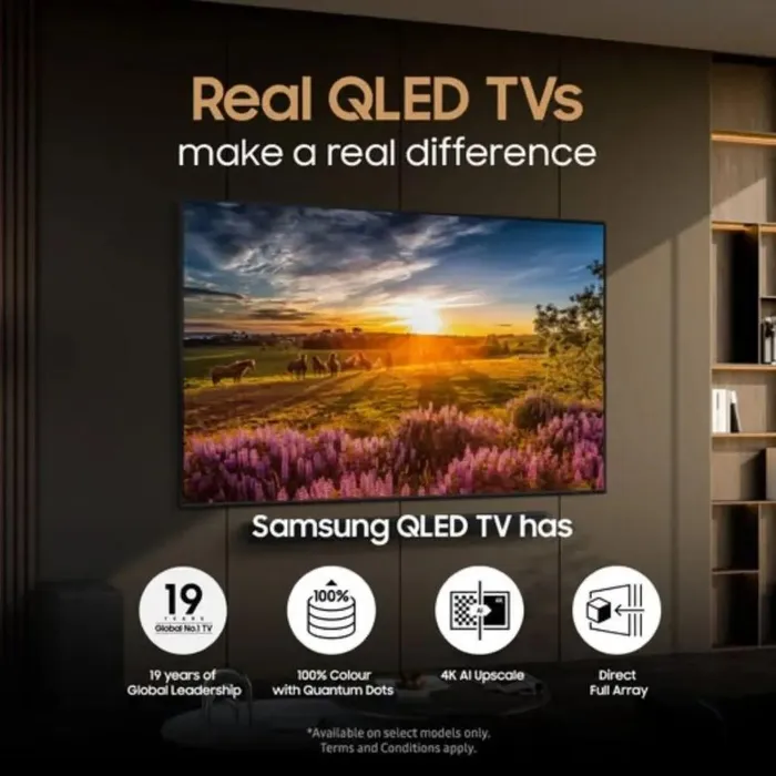 In simple terms, the Real QLED mark confirms that your TV delivers superior picture quality, powered by genuine Quantum Dot technology. When it comes to visual brilliance, Samsung’s Quantum Dot technology is leading the charge in delivering a picture-perfect viewing experience.