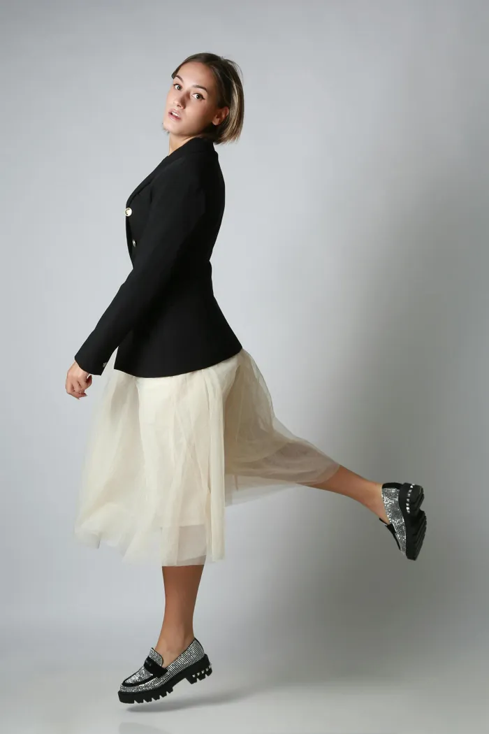 A well-cut blazer in black, navy or beige is essential. It can instantly make any outfit look more sophisticated. Spektor describes the blazer as "your secret weapon".