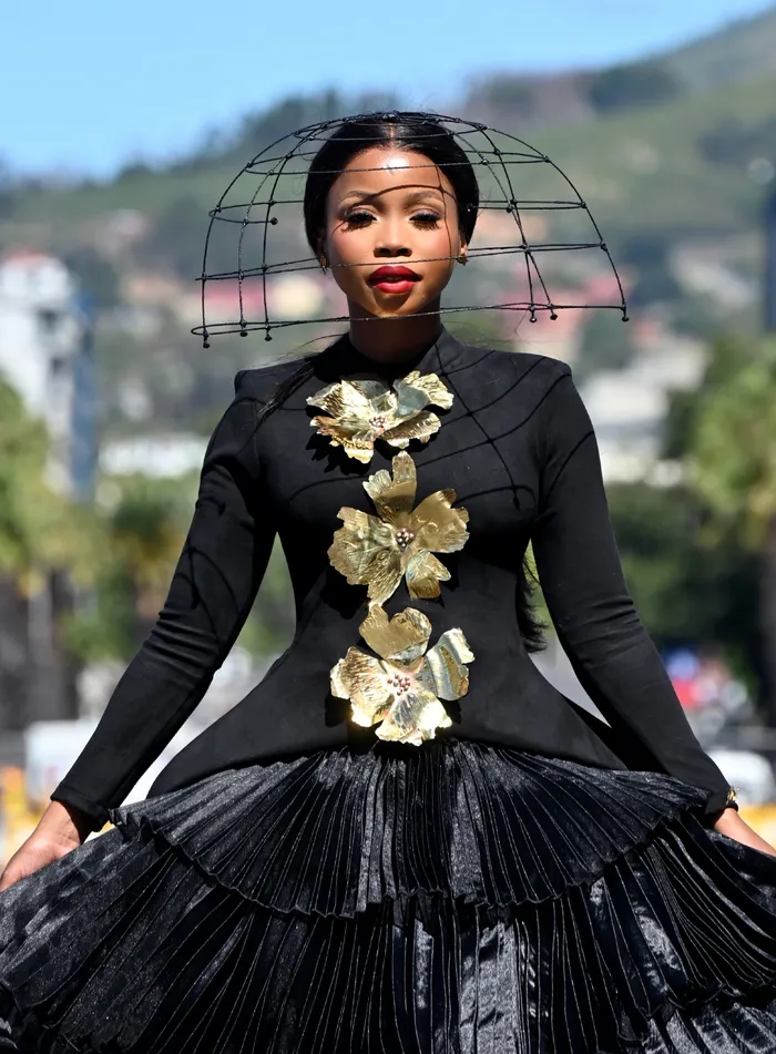 Some outfits leaned into traditional-inspired details. Pictured is South African model and business owner Rethabile Lethoko-Ncwana.