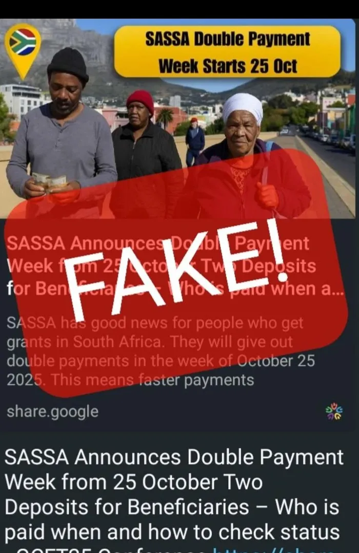 The South African Social Security Agency has said this viral post about double grant payments is false information. It said there are no double grant payments taking place.