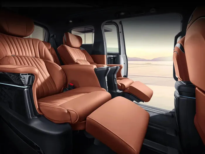 Dual power sliding doors make access easy, while extensive sound insulation and laminated glass create an almost silent cabin at highway speeds.