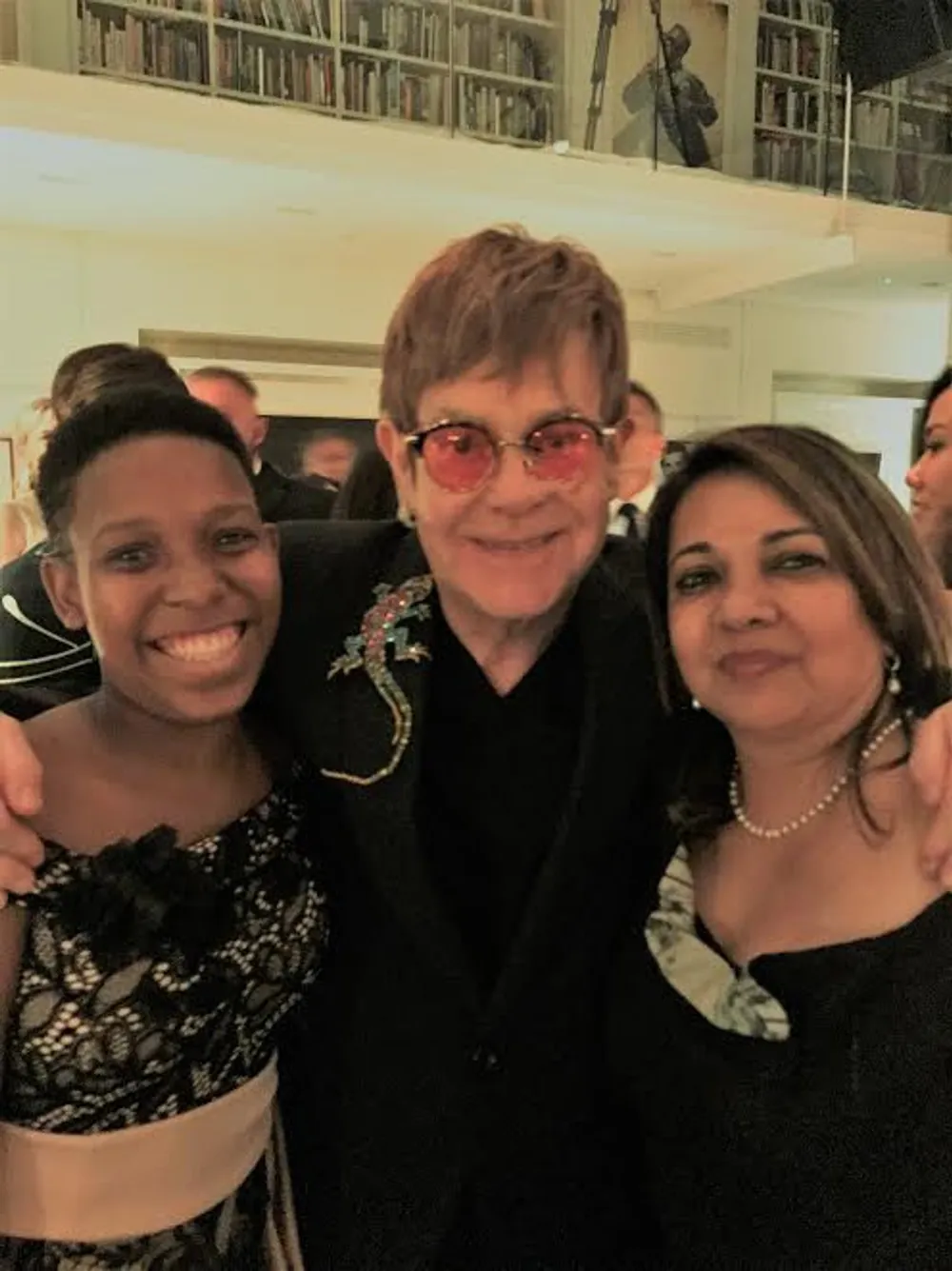 Lindiwe Nyathikazi (KZN Children’s Hospital Trust youth ambassador), Sir Elton John and Dr Arthi Ramkissoon (Founder & CEO, KZN Children’s Hospital Trust). Picture: Supplied