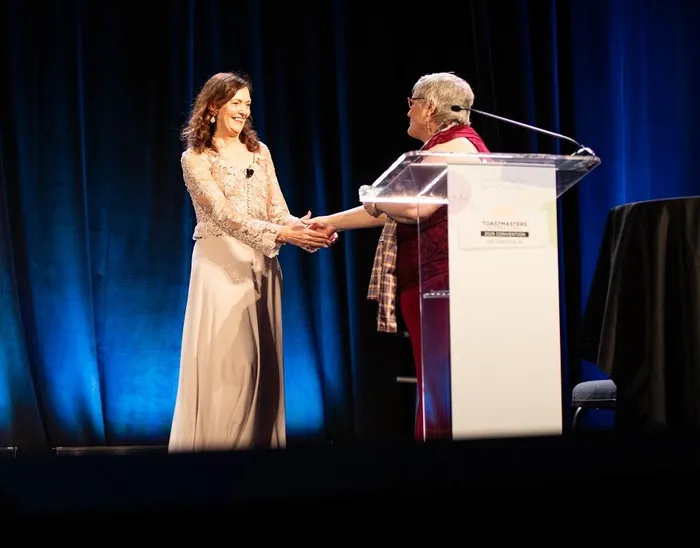 She recalled how the Covid pandemic led to Toastmasters evolving from a purely in-person organisation to one that, for a time, was entirely online, and now we've got in-person, online, and hybrid.