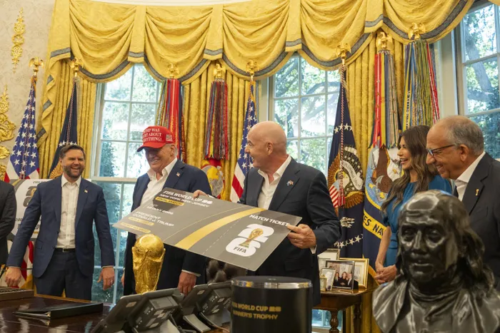 FIFA President Gianni Infantino gives President Donald Trump a ticket to the 2026 World Cup at the White House in August.