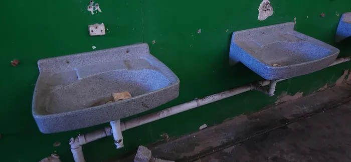 A row of metal basins stood dirty, and there was no running water.