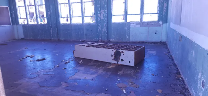 Many classrooms were severely damaged, with floors covered in peeling paint and debris.