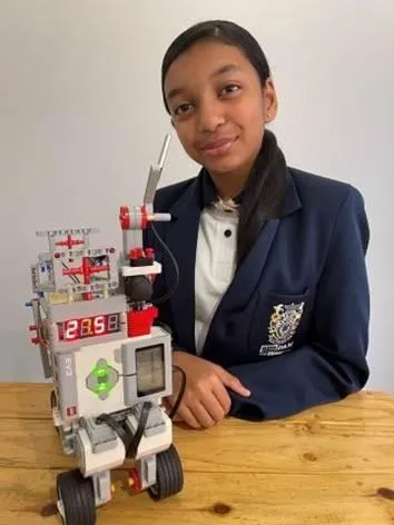 Reddam House Umhlanga pupil Sinead Samputh, 13, with her low-cost health-assistant robot “Baymin”. Sinead's robot won her the Inspired Global Robotics Competition in the 12–13 category.