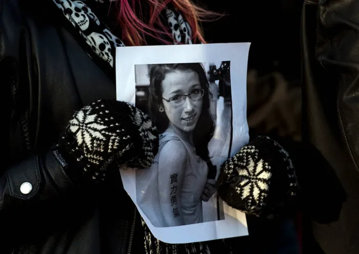 A woman holds a photo as several hundred people attend a community vigil to remember Rehtaeh Parsons at Victoria Park in Halifax, Nova Scotia. Rehtaeh, 17, died by suicide after an image of her alleged gang rape was distributed online.
