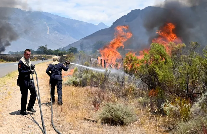 The Cape Winelands District Municipality’s Fire Services battle a fire that broke out in Franschhoek.