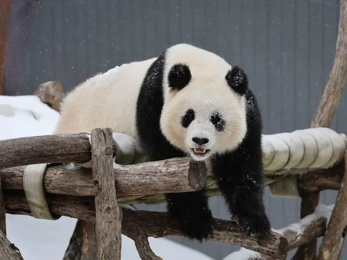 The pandas climbed, tumbled and played with their toys in the snow. Zookeepers said Qing Bao, in particular, seemed to enjoy frolicking in the snow. Meanwhile, she had entertainment as “Bao Li showed off his somersaulting skills for her” in front of their “howdy” gate, a mesh-like fence that separates their enclosures.