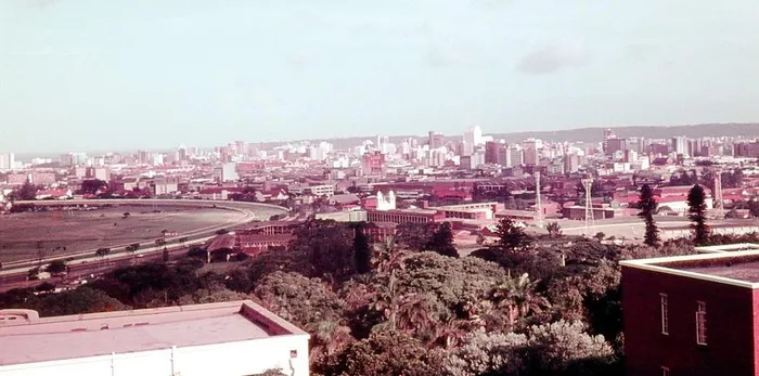 A picture shot from the Observatory on Durban's Berea of the city and race course, probably from the mid 80s.
