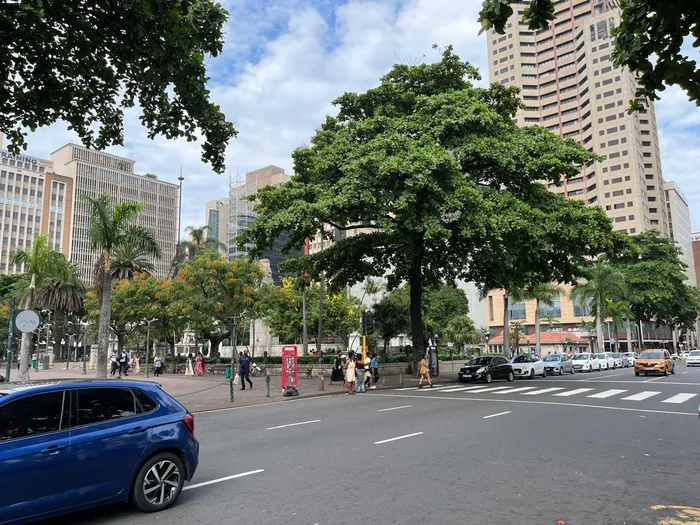 Durbans Francis Farewell Gardens seen from West Street, today Dr Pixley kaSeme Street, shot in 1953.