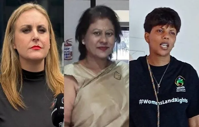 Women are leading change in South Africa's local governance, with (from left) Jacqui Uys breaking barriers as a mother and politician, Andisha Maharaj embodying grassroots activism for environmental justice, and Wendy Pekeur championing equality by securing land rights and fighting for women's empowerment.