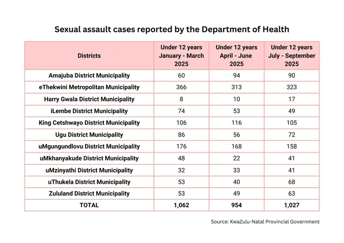 A distressing revelation that highlights a growing crisis was brought to fore by the Department of Health in KwaZulu-Natal with its report that over 3,000 cases of sexual assault involving children under the age of 12 occurred between January and September 2025.