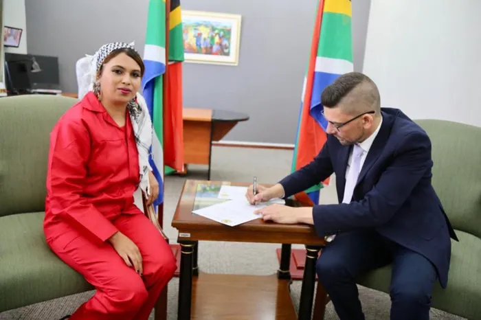 Aishah Cassiem, member of the Western Cape Provincial Legislature (MPL), with Daylin Mitchell, speaker of the legislature.