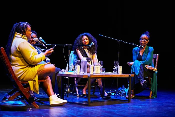 (Left to right) Mohale Mashigo speaks to authors Goretti Kyomuhendo, Zulaikha Patel and Pumla Dineo Gqola about emotional exhaustion and crisis fatigue.