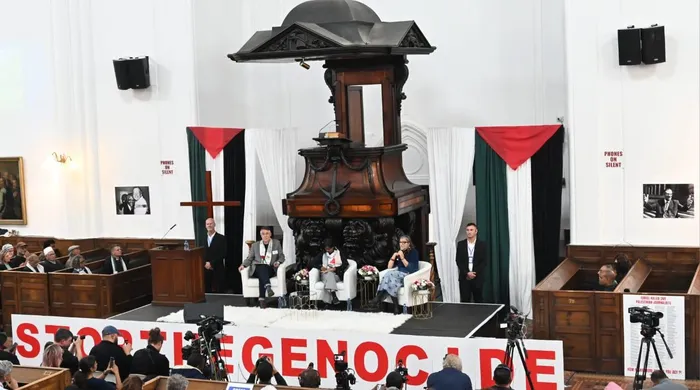 Shortly after Albanese’s arrival, Reverend Rene August from SA Christians for a Free Palestine apologised to her for the court papers that were delivered by a sheriff acting on an unauthorised instruction issued by an official in the Department of Justice and Constitutional Development.