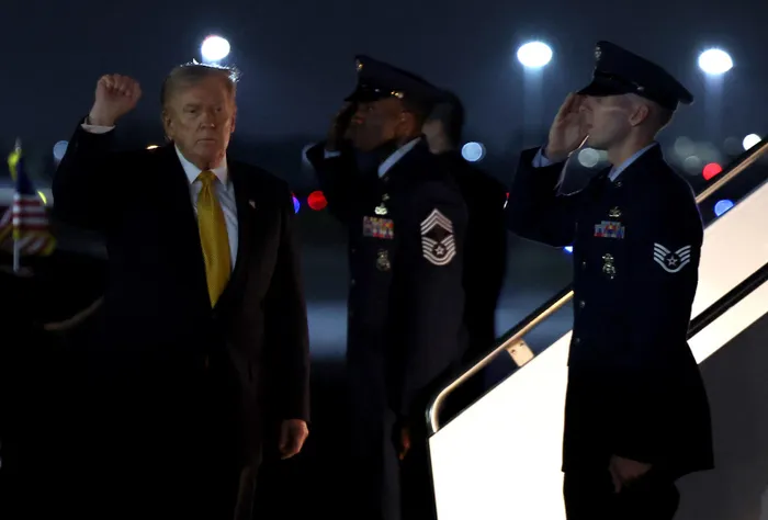 U.S. President Donald Trump walks off Air Force Ones as he arrives at Palm Beach International Airport on November 07, 2025 in West Palm Beach, Florida. President Trump is spending the weekend at his Mar-A-Lago resort.