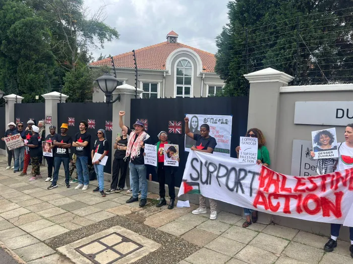 Palestinian solidarity groups came out to express their support for pro-Palestine political prisoners on hunger strike in British jails and held a solidarity protest at the offices of the British Council in Dunkeld West, Johannesburg on Tuesday.