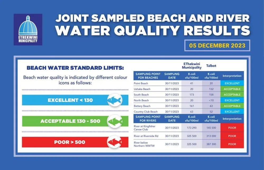 Gugu Sisilana, the eThekwini Municipality spokesperson said that it should be noted that the results for the same beaches on December 5, were “excellent” and “acceptable”.
