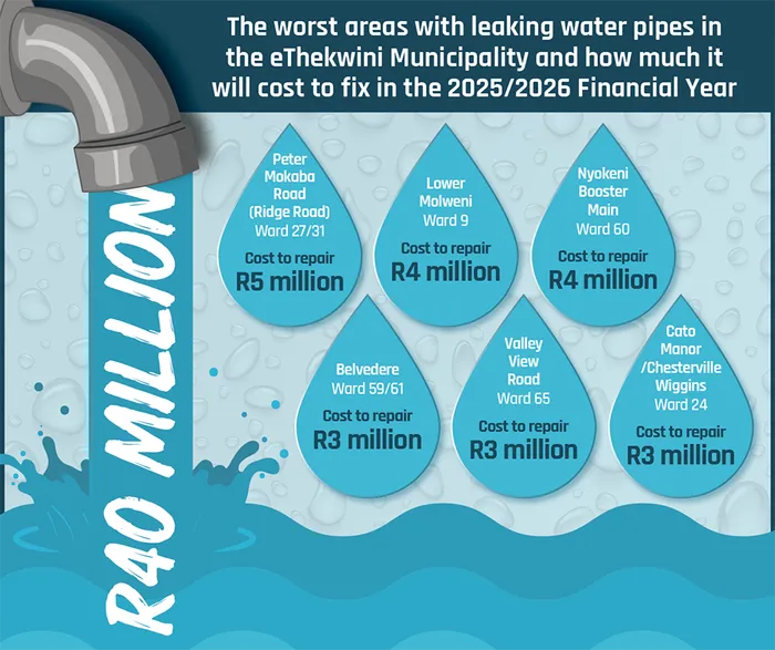 The eThekwini Municipality has allocated R40 million to fix 22 pipelines that experienced frequent bursts.