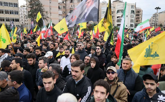 Mourners gather during a memorial rally held by supporters of Lebanon’s Hezbollah movement a day after Iran’s supreme leader was assassinated. Hezbollah has vowed to confront the US and Israel over their strikes on the group's key backer Iran.