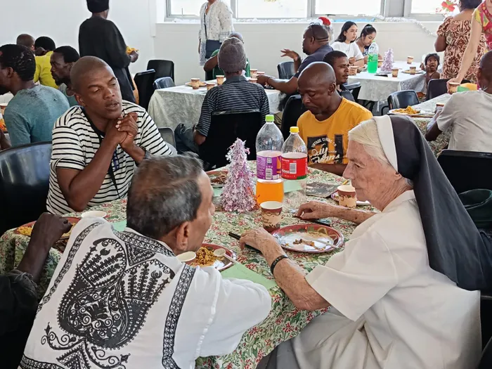 All the halls at the Denis Hurley Centre were full to overflowing as 350 homeless and housed people sat down and shared the Meal of Reconciliation on the Day of Reconciliation.