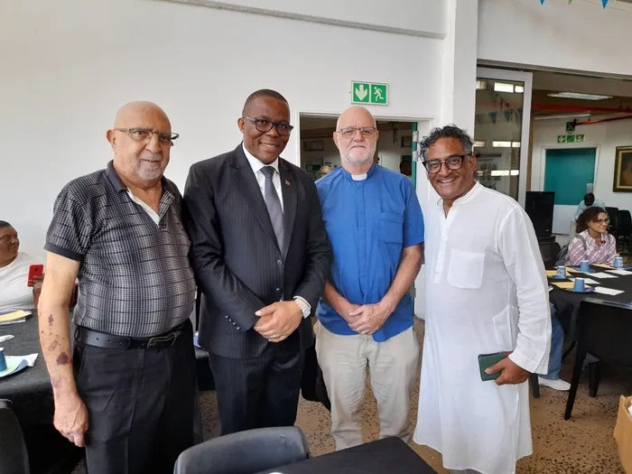 From left, Dr AV Mahomed from the Grey Street Mosque, Ethekwini Mayor Cllr Cyril Xaba, Rev Mike Vorster former Methodist bishop and Director of the Denis Hurley Centre Dr Raymond Perrier at the reconciliation meal.